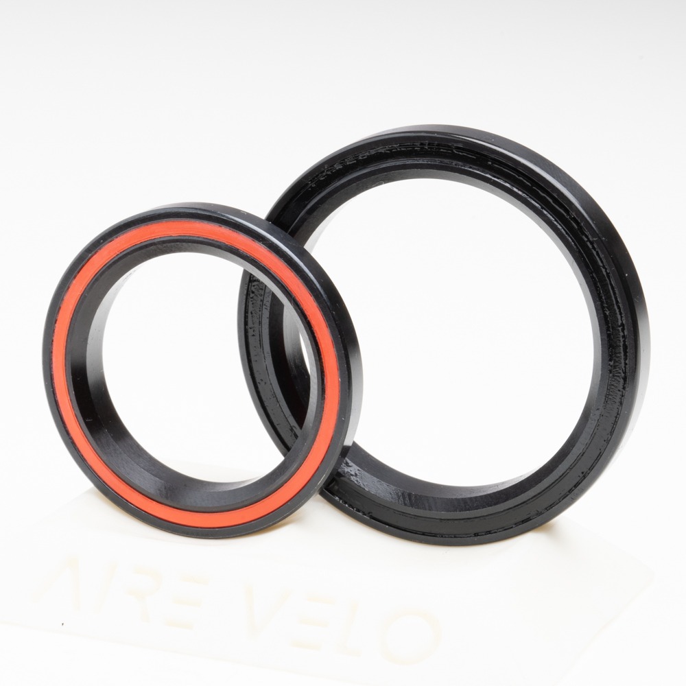 Hybrid Ceramic: Chrome Steel races with Si3N4 Ceramic balls, this slightly reduces weight and reduces friction within the bearing. Intended for riders looking for the best performance in their headset bearings.